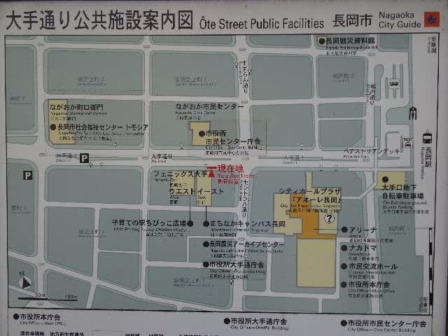 長岡駅から信濃川方向にまっすぐ伸びる町のメインストリートが大手通りである。現在の市役所であるアオーレ長岡は駅を背にすると通りの左手。そのあたりが長岡城のあった地点となる。